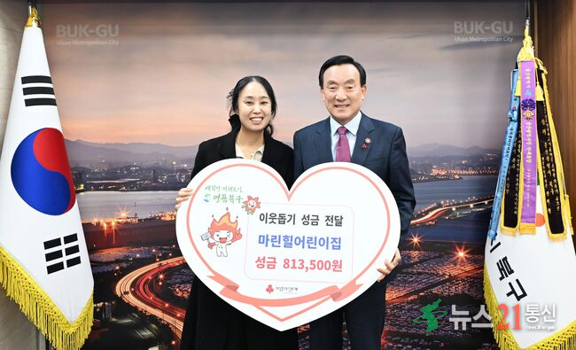 [뉴스21 통신=최병호 ]*사진출처-울산북구청마린힐어린이집은 10일 북구청장실에서 아나바다 행사 수익금 81만3천500원을 이웃돕기에 사용해 달라며 박천동 북구청장에게 전달했다.