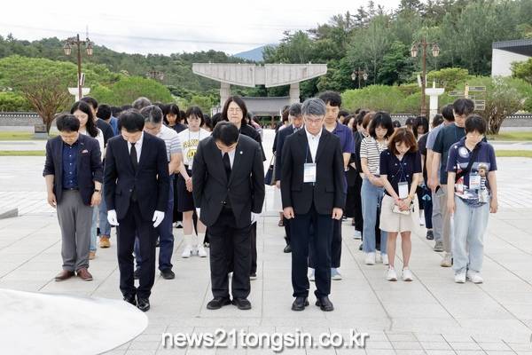 전국 국립사범대학부설중·고등학교연합회(이하 국사련) 회원 90여 명은 20일 국립5·18민주묘지에서 합동참배를 진행했다.