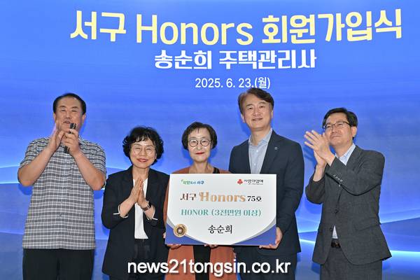 아주 특별한 마음부자가 서구아너스 회원으로 이름을 올렸다. 광주광역시 서구(구청장 김이강)는 지난 23일, 삶의 고비마다 받은 작은 은혜를 되새기며 조용한 나눔을 실천해 온 주택관리사 송순희 씨의 ‘서구아너스’ 가입식을 개최했다고 밝혔다.