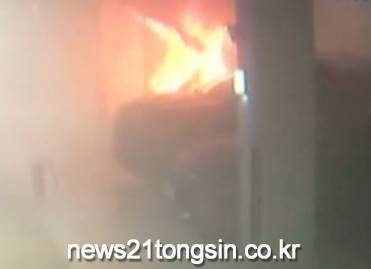 곧이어 불꽃이 번쩍이더니 폭발과 함께 차량에서 불길이 솟구친다.