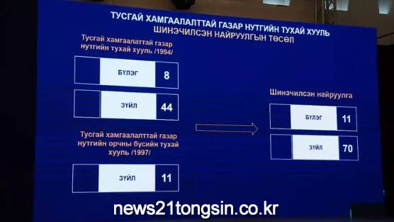 그 후, 환경 및 산림부 특별보호구역 정책 시행국장인 D. 바트소그트가 특별보호구역법 개정안 초안을 발표했다.
