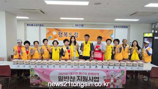 한편 대신면 지역사회보장협의체는 지난 3월부터 오는 10월까지 약 8개월 동안 매주 화요일에 대신면 적십자봉사회와 새마을부녀회 두 단체와 함께 ‘어르신 한끼뚝딱 밑반찬 지원사업’을 진행하고 있으며, 맛있는 반찬과 함께 따뜻한 마음을 전하며 지역사회에서 큰 호응을 얻고 있다.