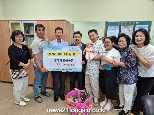 장평면 지역사회 보장협의체는 저출생으로 인한 지역 소멸 위기가 심각해지는 가운데 출산 장려 분위기를 확산시키고 아기의 탄생을 축하하기 위해 2025년부터 신규사업으로 출산 가정에 과일바구니와 20만 원 상당의 상품권을 지원하는 사업을 진행하고 있다.