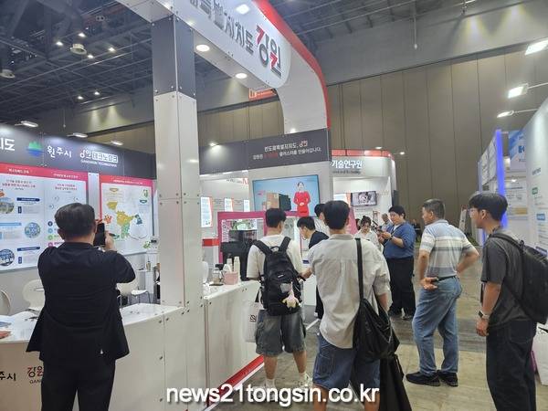 원주시는 강원특별자치도와 공동으로 홍보관을 운영하며 지역의 전략산업 육성 방안과 투자 여건을 집중적으로 알렸다.