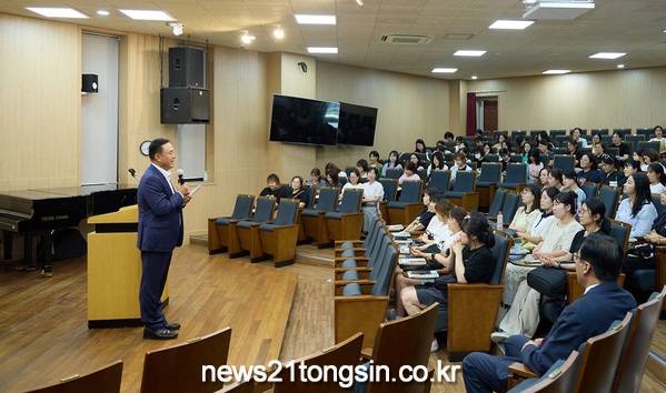 여주시(시장 이충우)는 7월 7일(월)부터 7월 18일(금)까지, 총 10일간 여주대학교 봉사관 콘서트홀에서 관내 보육교직원 100여 명을 대상으로 ‘2025년 보육교직원 직무교육’을 실시한다고 밝혔다.