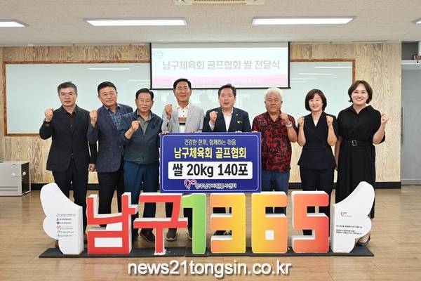 광주남구체육회골프협회(회장 양승남)는 10일 광주남구자원봉사센터에 20kg 쌀 120포를 전달했다. 이번 기부는 회원들이 자발적으로 모은 성금으로 마련됐으며, 2년째 이어지고 있다.