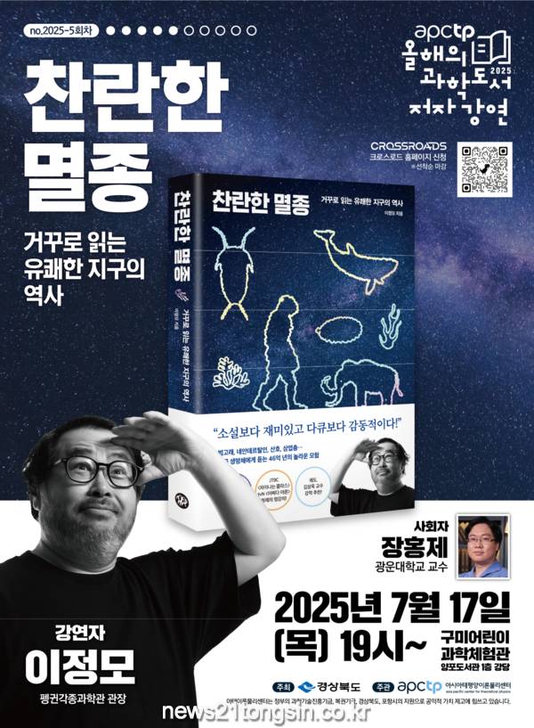 경상북도는 ‘2025 올해의 과학도서 저자 강연’을 구미어린이과학관에서 17일 ‘찬란한 멸종’의 이정모 작가를 초대해 진행한다. 이 작가는 지구 생명체의 멸종과 진화를 통해 인류의 미래를 성찰하는 내용을 과학적으로 쉽고 흥미롭게 강연할 계획이다.