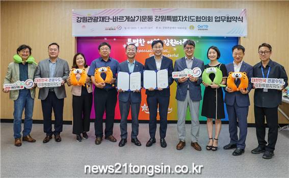 강원특별자치도의 관광 활성화를 이끌고 있는 강원관광재단과 진실, 질서, 화합의 정신으로 밝고 건강한 사회 건설에 이바지하는 바르게살기운동 강원특별자치도협의회가 '2025-2026 강원 방문의 해'의 성공적인 추진을 위한 업무협약(MOU)을 맺었다고 밝혔다.