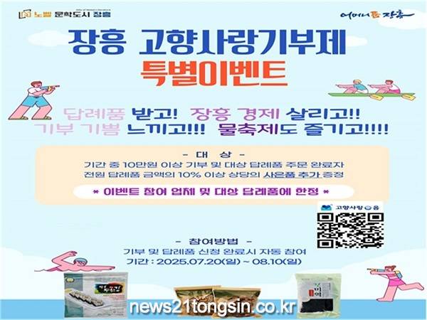 장흥군은 제18회 정남진 장흥 물 축제 개최를 기념해 고향사랑기부제 특별 이벤트를 실시한다고 밝혔다.