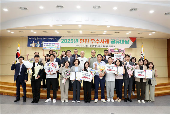 강원특별자치도는 7월 17일(목) 오후 2시에 도청 별관 4층 회의실에서 도 및 시군 민원 관련 공무원 등 100여 명이 참석한 가운데 「2025년 민원 우수사례 공유마당」을 개최했다.
