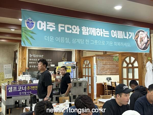 지난 18일 여주FC(단장 김영기)는 초복을 앞두고 관내 음식점인 황학산에서 폭염속에서도 깨끗한 여주시 환경 조성을 위해 고생하는 여주시청 환경·도로주무관 등 100여 명에게 삼계탕을 대접했다.