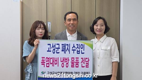 고성군사회복지협의회(회장 김종환)는 7월 22일 고성군청 복지지원과를 방문하여 폐지수집 어르신들의 여름철 안전을 위한 냉방 꾸러미 17세트(총 119만 원 상당)를 전달했다