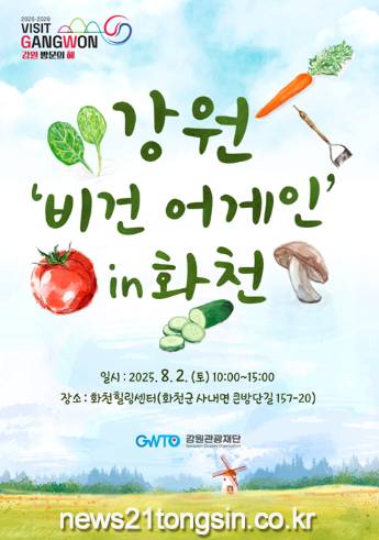 강원관광재단(대표이사 최성현, 이하 재단)은 8월 2일(토) 화천힐링센터에서 강원특별자치도의 새로운 지역 특화 관광콘텐츠인 ‘강원 비건 어게인’ 프로그램을 운영한다고 밝혔다.
