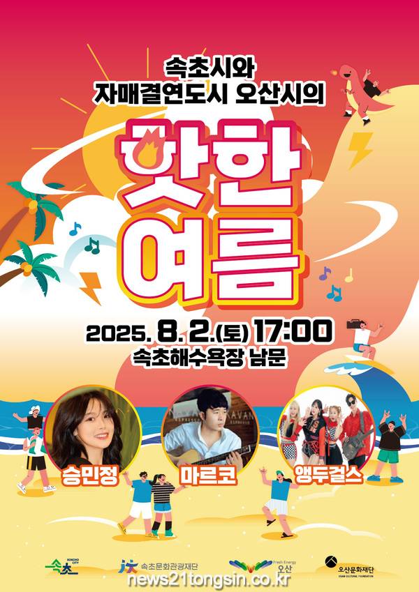‘속초시와 자매결연도시 오산시의 핫한 여름’을 주제로 열리는 이번 공연은 속초문화관광재단이 주최·주관하고 오산문화재단이 협력하며 마련됐다. 양 도시는 이번 공연을 통해 문화예술 교류 기반을 실질적으로 확대하고, 지역 간 우호 협력 관계를 강화할 계획이다.