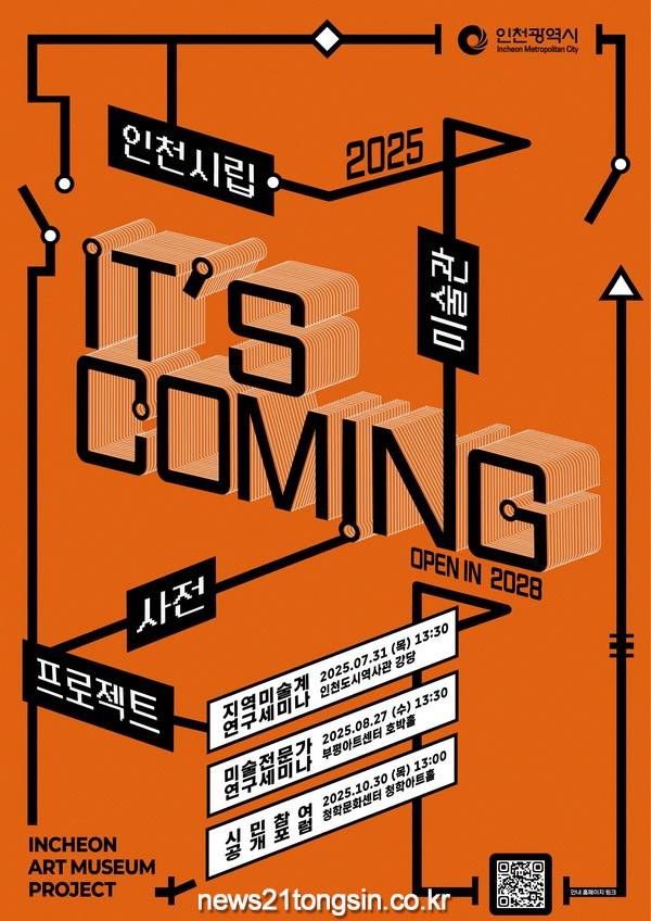 이번 세미나는 ‘인천시립미술관의 공간적 지형과 생태계’를 핵심 의제로 삼아, 인천 미술의 정체성 확립과 미술관이 지역사회 및 예술 생태계에서 수행해야 할 역할을 심도 있게 논의하는 자리로 마련됐다.세미나에는 지역 작가, 기획자, 미술대학 교수, 예술행정 전문가 등 총 14명이 참여해 ▲인천미술의 발자취와 얼굴들 ▲글로벌 아트 트렌드와 인천시립미술관의 브랜딩 ▲지역문화 인프라의 활용 및 지역 커뮤니티와의 협업 활성화 등 세 가지 주제를 중심으로 발표와 토론을 펼칠 예정이다.특히, 인천 미술계의 역사와 현황, 예술 생태계의 확장 가능성, 시립미술관의 공공성과 정체성, 지역사회와의 협력 방안 등 다양한 논의를 통해, 시립미술관 개관에 앞서 실질적이고 실행 가능한 대안과 아이디어를 모색하는 자리가 될 것으로 기대된다.이번 세미나의 토론자로는 ▲강형덕(한국미술협회 인천광역지회 회장) ▲김락기(인천문화재단 지역문화본부 본부장) ▲김상원(인하대학교 교수) ▲김영규(복합문화공간화안, 갤러리킴세 관장) ▲김최은영(인천아트쇼 예술감독) ▲김홍기(미술평론가) ▲노기훈(작가) ▲도지성(인천민예총 미술위원회) ▲민운기(스페이스빔 대표) ▲박지혜(작가) ▲오창근(경인교육대학교 교수) ▲우사라(부평문화재단 예술교육팀장) ▲이계원(인천대학교 교수) ▲이호진(인천카톨릭대 교수) 등 인천 미술계를 대표하는 다양한 인사가 참여한다.한편, 인천시립미술관 사전프로젝트는 이번 세미나를 시작으로, 8월 27일에는 수도권 공립미술관 관계자가 참여하는 제2차 세미나, 10월 30일에는 시민이 함께하는 공개포럼을 차례로 개최해 인천시립미술관의 정체성과 운영 방향에 대한 사회적 논의를 지속해 나갈 계획이다.지역미술계 연구세미나 참관을 원하는 누구나 29일까지 사전 신청 (https://forms.gle/e2fRRXm189DvvhUD6)을 통해 참여할 수 있다.정경원 시 문화기반과장은 “인천시립미술관은 개관 이전부터 지역미술계와 시민의 목소리를 담아내는 열린 미술관으로 조성될 것”이라며, “이번 연구세미나가 인천 미술의 정체성과 시립미술관의 공공적 역할을 함께 모색하는 뜻깊은 계기가 되기를 바란다”라고 말했다.아울러, 인천시립미술관은 인천뮤지엄파크 조성사업의 핵심 시설로, 미추홀구 학익동 587-53번지 일원에 건립될 예정이다. 인천시립박물관과 함께 복합문화공간으로서 2028년 개관을 목표로 추진 중이다.