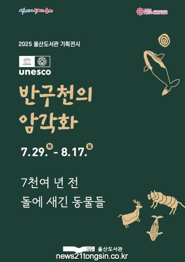 울산도서관은 7월 29일부터 8월 17일까지 1층 전시실에서 반구천 암각화 기획전시 ‘7,000여 년 전 돌에 새긴 동물들(展)’을 개최한다고 밝혔다.