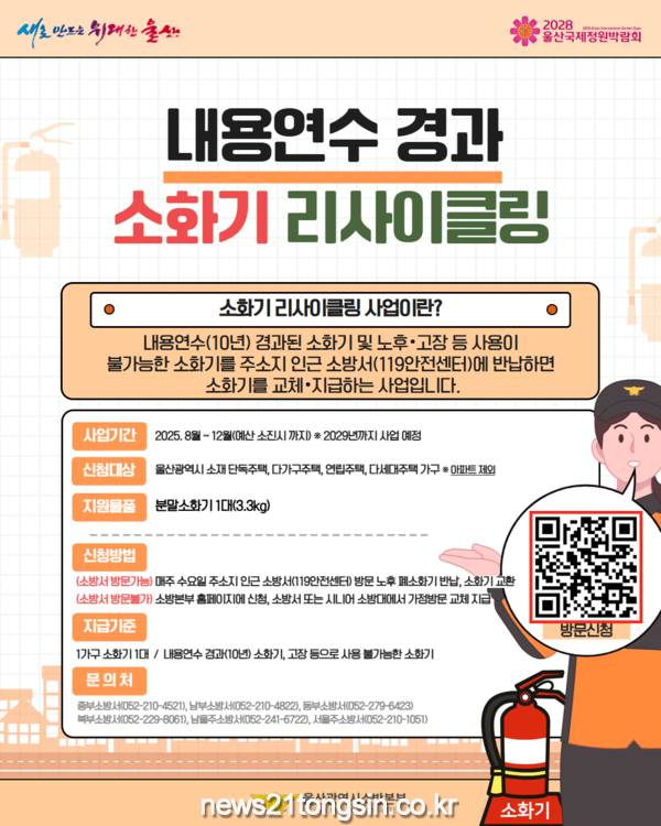 울산소방본부가 10년 이상 된 노후 소화기를 새 소화기로 무상 교체해주는 사업을 추진 중이다.