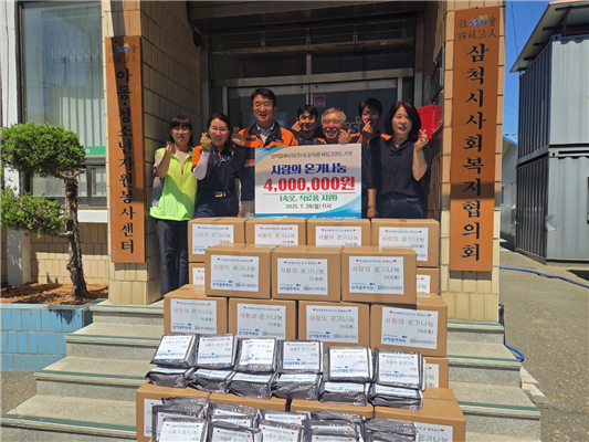 삼척시사회복지협의회(회장 김문호)는 7월 28일 협의회 사무실에서 삼척블루파워(주)(대표 이형수)와 함께 ‘사랑의 온기나눔사업’의 일환으로 400만 원 상당의 물품 지원 전달식을 진행했다.