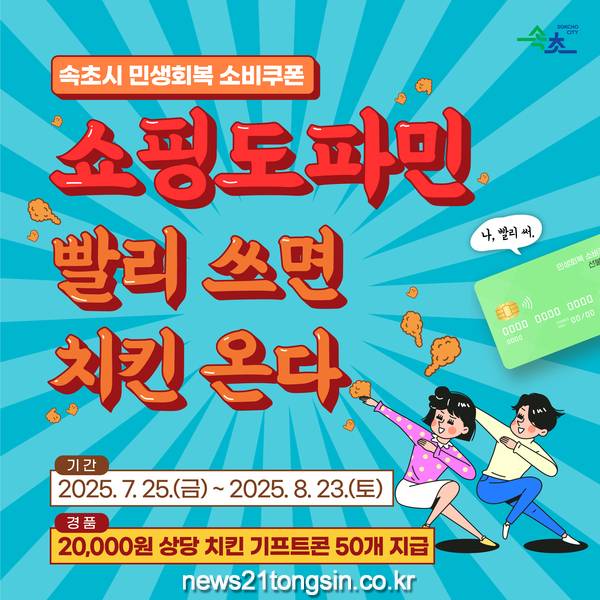 한편, 속초시는 소비쿠폰의 지급 시작과 동시에 속초시 공식 SNS를 통해 지급 방법과 조기 사용을 안내하는 직관적인 홍보를 동시에 시행하였으며, 오는 8월 15일까지를 민생회복 소비쿠폰 촉진 주간으로 지정하고 적극적인 사용 독려에 나서는 등 침체된 경기 회복을 위해 역량을 총집중하고 있다.