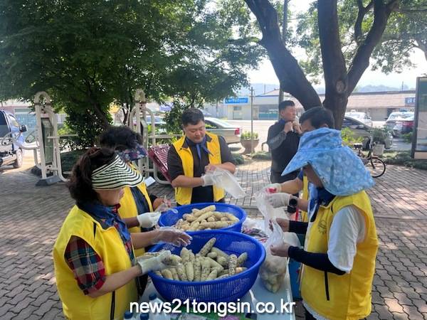앞서 수확한 하지감자 판매 수익은 여름 폭염에 대비한 생수 나눔 활동에 쓰여, 주민들의 더위 해소에 큰 도움이 됐다.