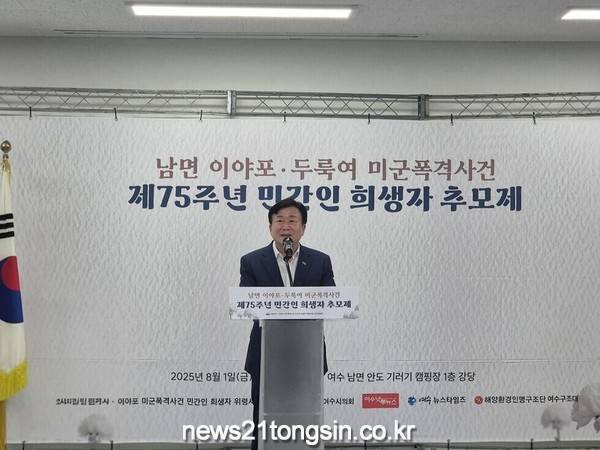 정기명 여수시장은 “75년이라는 긴 세월 동안 고통을 가슴에 묻고 살아오신 유가족 여러분께 깊은 위로의 말씀을 전한다”며 “여수시는 이들의 아픔을 외면하지 않고, 진실 규명과 역사적 복원을 위한 노력을 끝까지 이어가겠다”고 밝혔다.