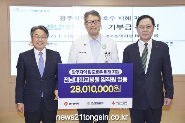 전남대학교병원이 집중호우 피해를 입은 시민들에게 써달라며 성금 2801만원을 광주시에 전달했다.