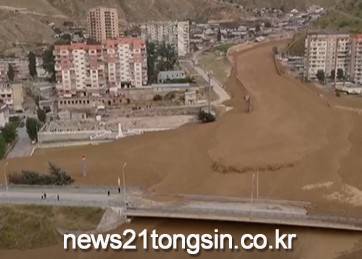 현지 시각 지난달 31일 러시아 남단의 한 마을에서 포착된 대형 산사태.