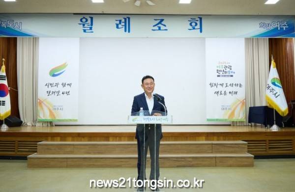 여주시(시장 이충우)는 8월 1일 9시부터 시청 대회의실에서 130여 명의 공직자가 참석한 가운데 8월 월례조회를 개최하였다.