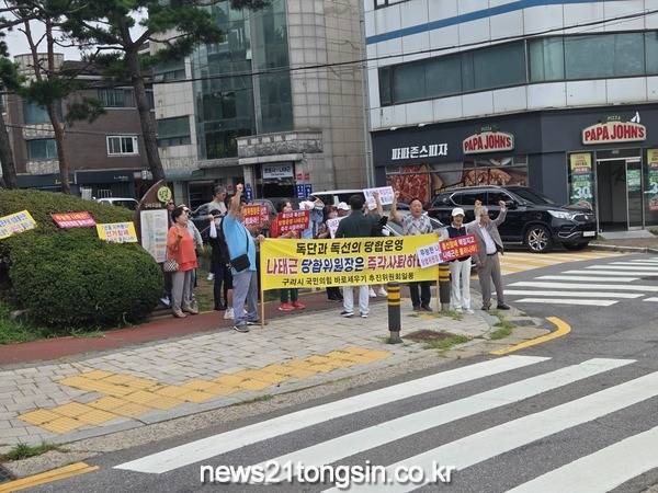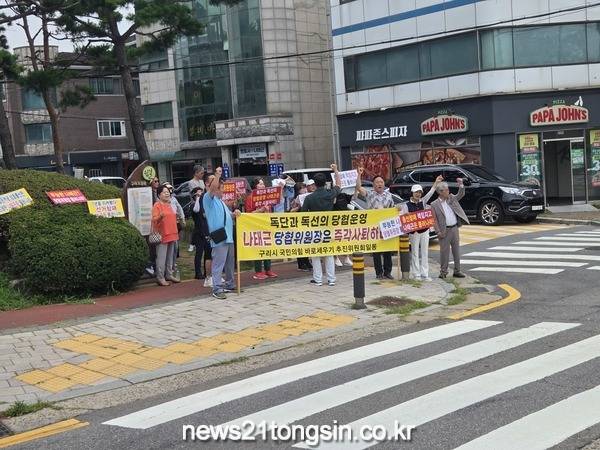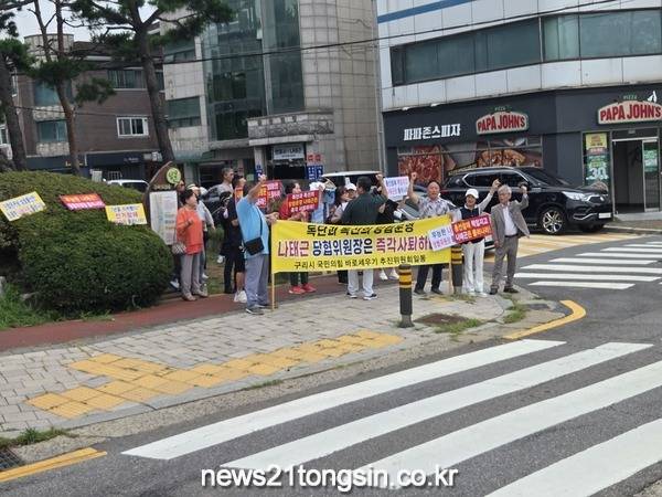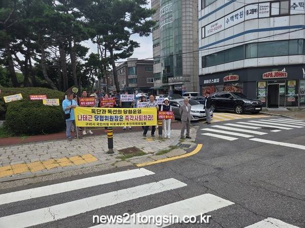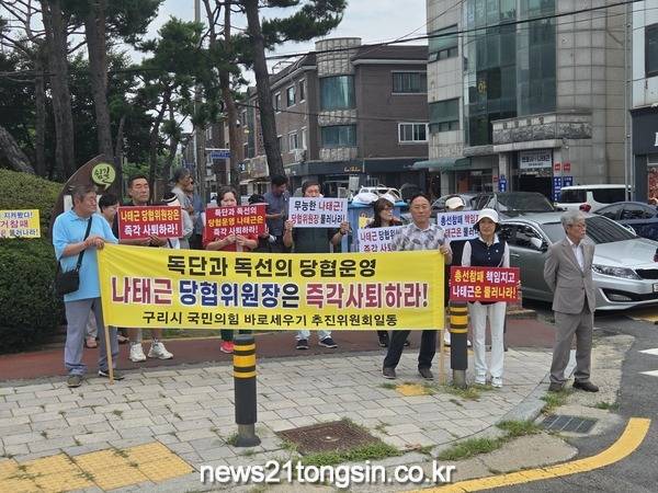 구리시 국민의힘 바로 세우기 추진위원회(공동위원장 김명수, 권순철 , 이하 추진위)은 나태근 지역위원장의 퇴진을 촉구하는 집회가 오는 8월 11일 오전 10시 30분 나태근 위원장 변호사 사무실(구리시 장자대로 1번길 4 금강빌딩) 앞에서 열렸다.