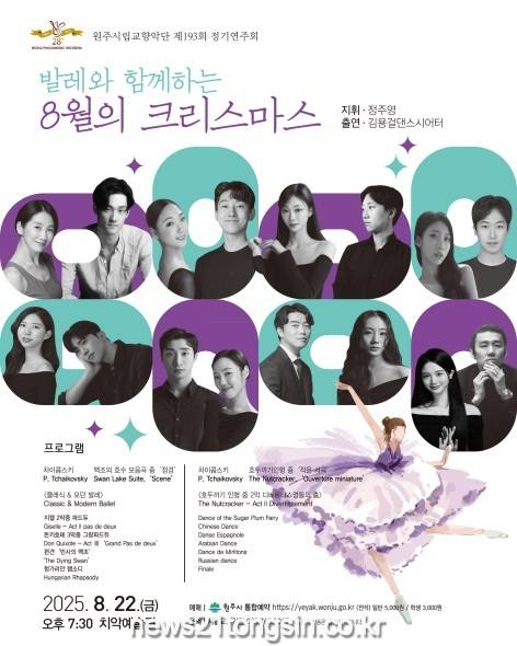▲ 사진=원주시원주시립교향악단(상임지휘자 정주영)은 오는 22일(금) 오후 7시 30분 치악예술관에서 제193회 정기연주회 ‘발레와 함께하는 8월의 크리스마스’를 개최한다.