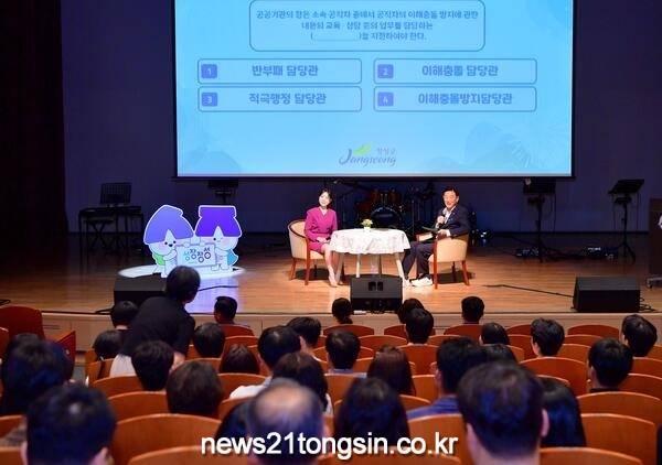 ▲ 사진=장성군군은 12일 장성문화예술회관 소공연장에서 공무원 200여 명이 참석한 가운데 ‘청렴 토크 콘서트’를 개최했다. 관행적인 행사가 아닌 연극·음악 공연, ‘참여 이벤트’ 등 다양한 청렴 콘텐츠를 선보여 호응을 얻었다.