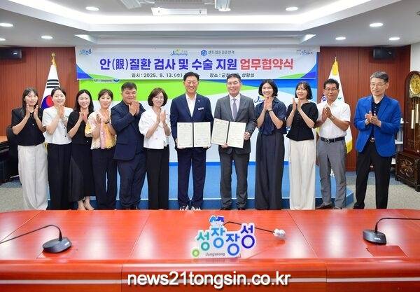 장성군이 13일 장성군청 상황실에서 ‘센트럴윤길중안과’와 안질환 검사 및 수술지원 관련 업무협약을 체결했다.