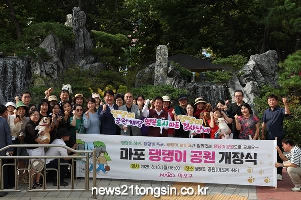 마포구(구청장 박강수)가 조성한 주민과 반려견이 함께 즐길 수 있는 새로운 휴식공간 ‘댕댕이 공원’이 8월 18일 새롭게 문을 열었다.