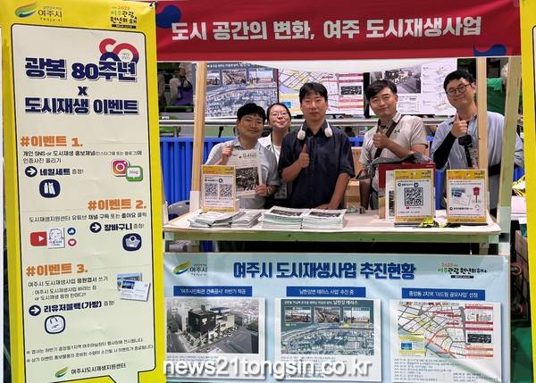 여주시 도시재생지원센터는 8월 15일(금) 여주 종합운동장(실내 체육관)에서 개최된 ‘광복 80주년 경축식’ 행사 시정책 홍보부스에 참가하여 도시재생사업 추진현황에 대한 홍보를 실시하였다고 밝혔다.