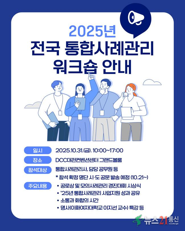 보건복지부(장관 정은경)와 한국사회보장정보원(원장 김현준)은 10월 31일 대전컨벤션센터(DCC)에서 ‘2025년 전국 통합사례관리 워크숍’을 개최했다. 이번 행사는 전국 229개 시·군·구에서 운영 중인 통합사례관리 사업의 성과를 공유하고, 현장 실무자 간 소통과 협력의 장을 마련하기 위해 진행됐다.이날 행사에는 전국 통합...