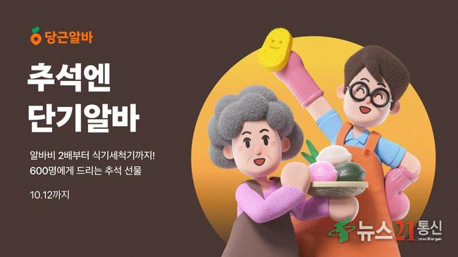 추석 황금연휴를 앞두고 당근의 지역 구인구직 서비스 ‘당근알바’가 단기 일자리 수요를 겨냥한 이벤트를 진행한다. 긴 연휴 기간 가게는 단기 인력을, 구직자는 짧은 기간 일자리를 찾는 경우가 많아 수요와 공급을 연결하려는 취지다.