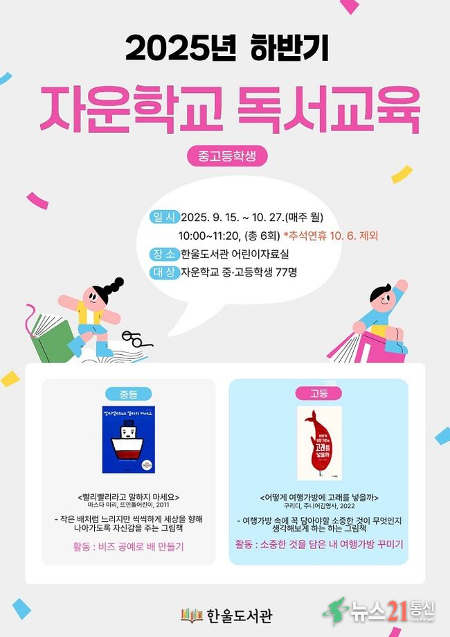 한울도서관은 2023년부터 자운학교 학생 대상으로 독서교육을 운영해 왔으며, 올해 상반기에는 유치 및 초등 총 14개 반 78명의 어린이 대상 프로그램을 운영한 데 이어 하반기에는 중고등 12개 학급 77명의 장애학생들을 대상으로 그림책을 활용한 독서교육을 운영한다.