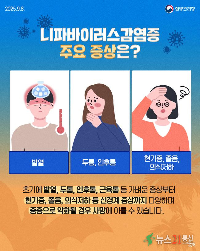 니파 바이러스는 고열, 두통, 호흡곤란 증세에서 시작해 뇌염으로 악화되며, 발병 후 며칠 내 사망에 이를 수 있다. WHO는 “치명률이 40~75%에 달하는 만큼 국제적 감시 체계 강화가 필수”라고 경고했다.