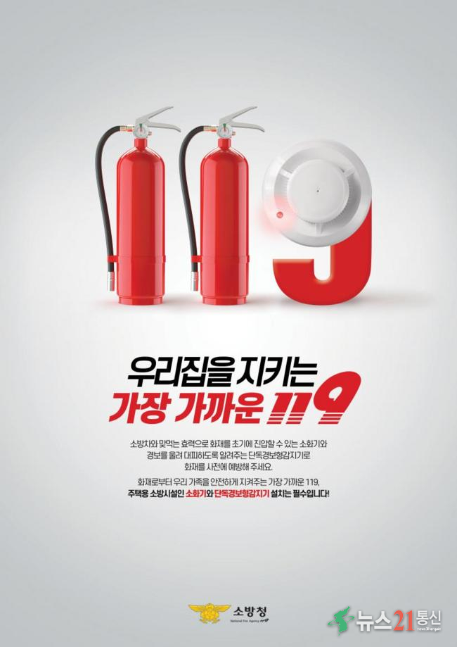 이처럼 소화기와 단독경보형 감지기 등 주택용 소방시설은 화재 발생 초기에 위험을 알리고 불길을 확산 전에 차단해 인명과 재산 피해를 크게 줄이는 효과가 있다. 아울러 「소방시설 설치 및 관리에 관한 법률」 제10조(2024. 1. 1. 시행)에 따라 아파트와 기숙사를 제외한 모든 주택에는 층마다 소화기 1개 이상, 구획된 실마다 단독경보형 감지기 1개 이상을 의무적으로 설치해야 한다.