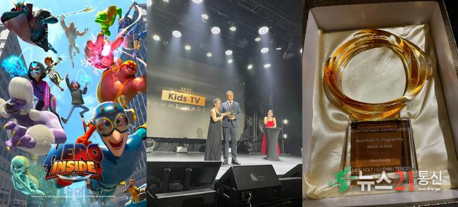 올해 6회째를 맞은 콘텐트아시아 어워즈는 아시아 전역에서 제작된 오리지널 시리즈와 예능, 영화 등 전 장르 콘텐츠를 대상으로 업계 전문가 60여 명이 심사에 참여하는 권위 있는 시상식이다. 지난 9월 초 대만에서 열린 행사에서 <히어로 인사이드>는 약 150편의 후보작 가운데 베스트 키즈 TV 프로그램 부문 수상의 영예를 안았다.