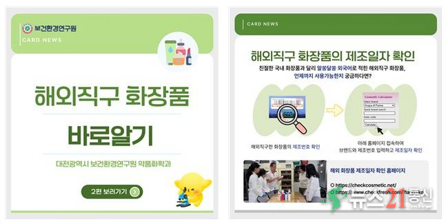 연구원은 누구나 쉽게 결과를 확인할 수 있도록 ‘시정 카드뉴스’, ‘시밴드’, 연구원 홈페이지 등 다양한 채널로 안내할 계획이다. 아울러 해외 화장품 제조일 확인 방법 등 실생활에 유용한 정보도 함께 제공한다.