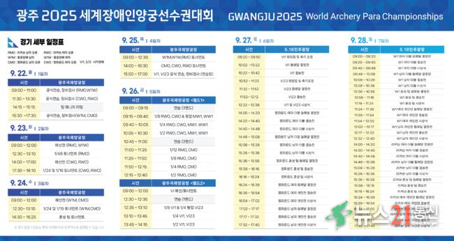 세계장애인양궁선수권대회(김옥금 홍보대사)광주광역시는 오는 9월 22일부터 28일까지 광주국제양궁장과 5·18민주광장에서 ‘광주 2025 세계장애인양궁선수권대회’가 열린다고 19일 밝혔다.