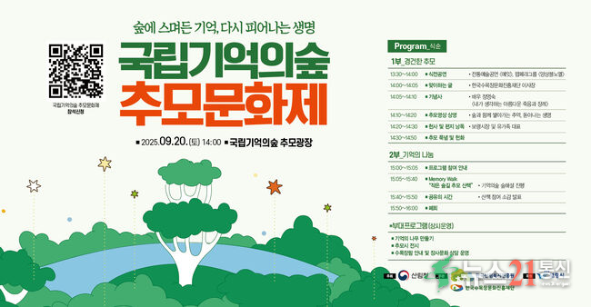 □ 국립기억의숲은 2022년 12월 개장하여 자연 친화적 장례문화와 공공추모공간의 가치를 확산하는 역할을 해왔다. 이번 문화제는 숲을 매개로자연과 인간, 삶과 죽음이 이어지는 의미를 되새기는 치유의 장이 될 것으로 기대된다.