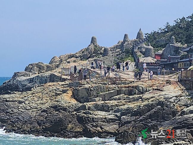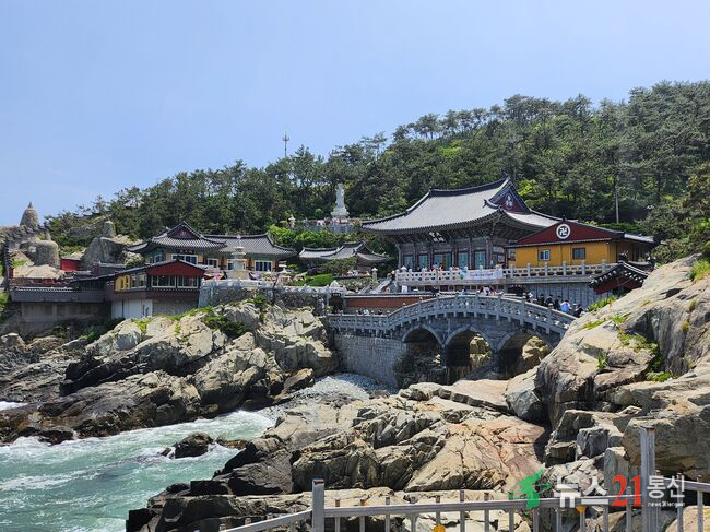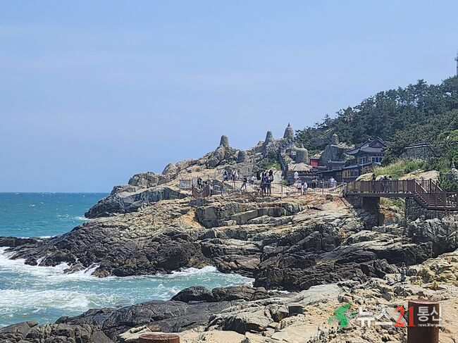 부산 기장에 자리한 해동용궁사는 1376년 고려 말 나옹화상이 창건한 사찰로, 한국에서 보기 드문 바닷가 절이다. 가파른 해안 절벽 위에 세워져 있어 바다와 어우러진 이색적인 풍광으로 유명하다. ‘바다의 용이 지켜주는 사찰’이라는 이름처럼, 해동용궁사는 오래전부터 풍어와 안녕을 기원하는 신앙의 중심지로 자리 잡았다.
