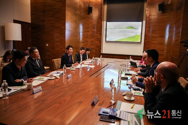 19일 노관규 순천시장이 중국 다롄에서 레온즈 에더 국제대학스포츠연맹(FISU) 회장을 만나 순천시의 2035년 세계유니버시아드대회 개최 의향을 설명하고 있다순천시가 이재명 대통령 지역공약인 세계유니버시아드대회 유치 추진에 속도를 내고 있다.