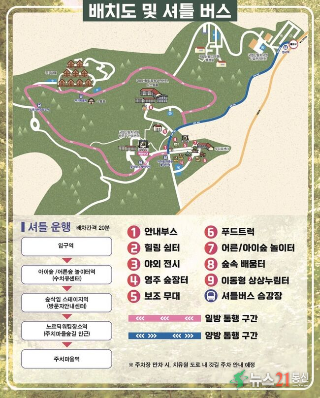 ‘2025년 백두대간 지역상생 산림치유박람회’ 행사 배치도 및 셔틀버스 운행 안내. 한국산림복지진흥원 국립산림치유원 제공