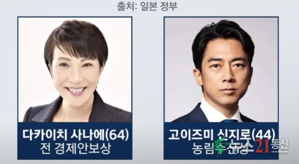 다카이치 사나에(高市早苗·64) 전 경제안보 , 고이즈미 신지로 농림수산상 [사진=KBS뉴스영상캡쳐]이시바 시게루 일본 총리의 후임을 결정할 집권 자민당 총재 선거가 22일 공식 개막했다. 이번 선거는 고이즈미 신지로(小泉進次郎·44) 농림수산상이 출마를 선언하면서 최종적으로 5파전 구도가 확정됐다.