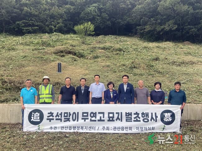 장흥군 관산읍행정복지센터(읍장 유양선)는 추석 명절을 앞두고 지역 공동묘지 6개소에 대하여 벌초 작업을 진행했다고 22일 밝혔다.