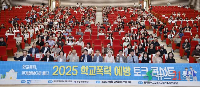 [사진 ] 광주동부교육지원청, ‘학교폭력 예방 토크콘서트’ 개최광주광역시동부교육지원청은 22일 광주광역시교육청교육연수원 대강당에서 ‘2025 학교폭력 예방 토크콘서트’를 개최했다.