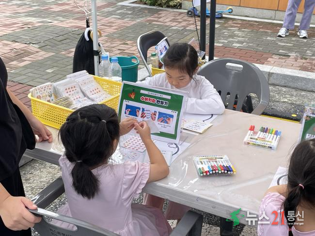 특히 이번 행사에는 관내 특수학교인 용인다움학교(교장 조현정) 전공과 학생들도 함께 참여하여 행사 참여 영유아를 지원하고, 직접 제작한 볼펜, A4 파일 홀더 등을 참가자들에게 나누어주었다.